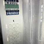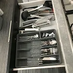 Έχει επίσης φούρνο μικροκυμάτων, ηλεκτρικό βραστήρα και ψυγείο.